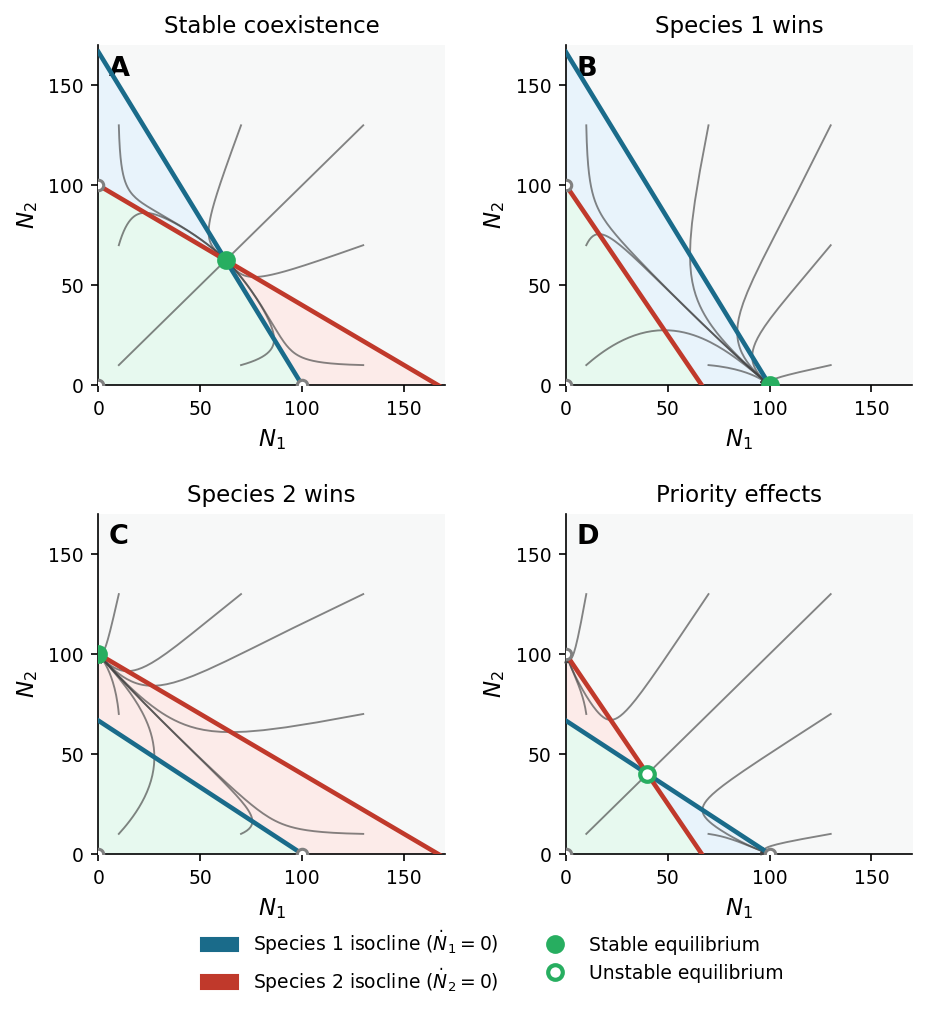 Students will write code in MATLAB or Python to simulate models, compute invasion growth rates, and visualise the outcomes of coexistence mechanisms across parameter space. They will apply dynamical systems methods, including stability analysis, phase plane techniques, and bifurcation theory, to analyse models both analytically and computationally.